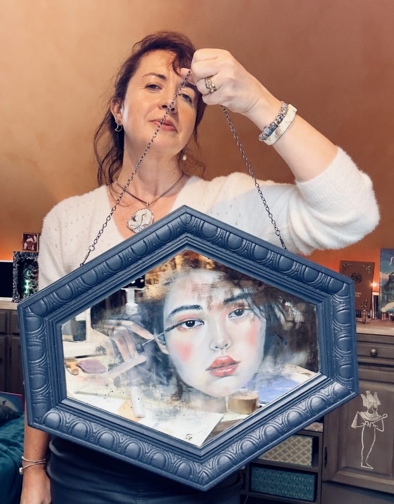 Pour moi, la peinture à l’huile est un peu comme une bataille entre le figuratif et le lâcher prise, contrairement à l’illustration qui me demande plus de précision. Sur de grandes toiles, je peux m‘abandonner, j’aime créer des coulures, des éclaboussures … Mes peintures sont figuratives : jeter la couleur me permet de m’affranchir un peu du réel et tendre vers l’émotion, et ainsi de me laisser aller aux formes et aux couleurs.